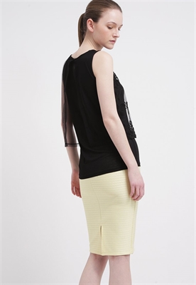 Largo:normalAjuste:ceñidosAncho de la espalda:31 cmModelo, altura:177 cm, lleva la talla 36Cuello/escote:cuello redondoEstampado:unicolorLargo de la prenda:59 cmLargo de manga:sin mangasMaterial exterior:100% viscosaCuidados:lavar a máquina a 40 °C, no utilizar secadoraNúmero de artículo:DP521E08K-Q11
