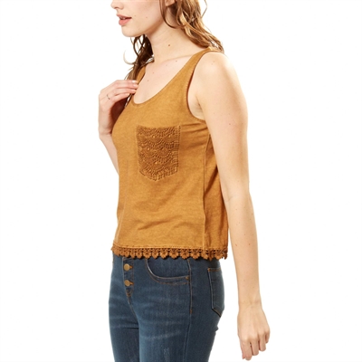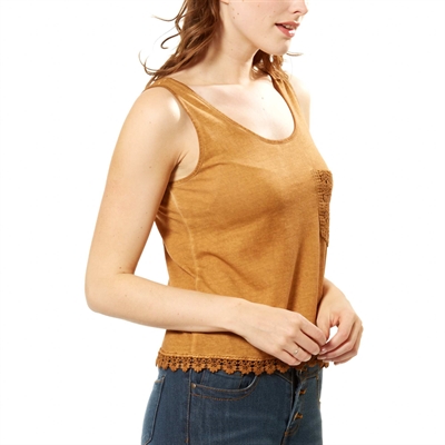 Hazte con este bonito top a la última. - Cuello redondo - Tirantes anchos - Bolsillo de macramé en el pecho - Bajo confeccionado en macramé - Largo de espalda: 55 cm aproximadamente. - Nuestra modelo lleva una talla M y mide 1,77 m.50% algodon,50% modalLavable a máquina.