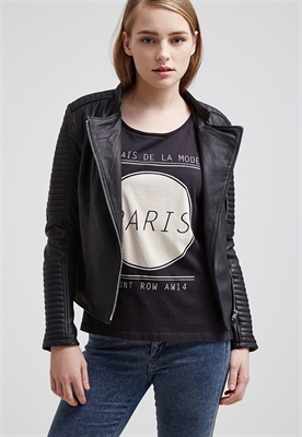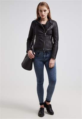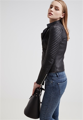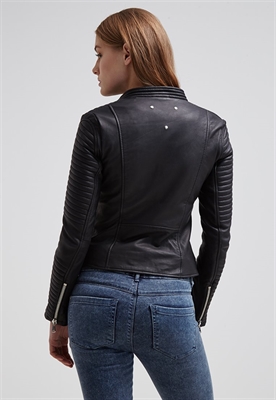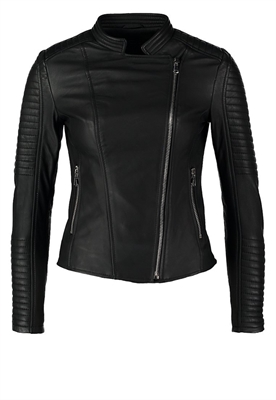 Largo:normalCierre:cremalleraRelleno:100% poliésterBolsillos:con cremalleraAncho de la espalda:35 cmModelo, altura:176 cm, lleva la talla 36Largo de la prenda:51 cmLargo de la manga:62 cmLargo de manga:manga largaMaterial exterior:100% cueroCuidados:lavado de cuero profesionalNúmero de artículo:ED021L003-Q11