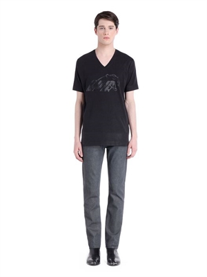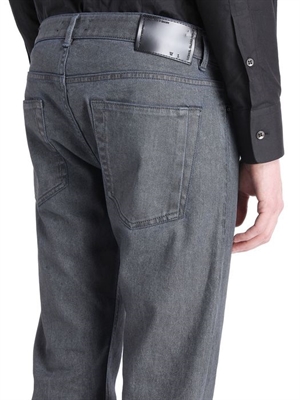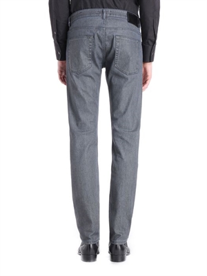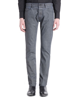 Indigo all-over coated denim with skinny straight leg. Leg opening: 16,5.