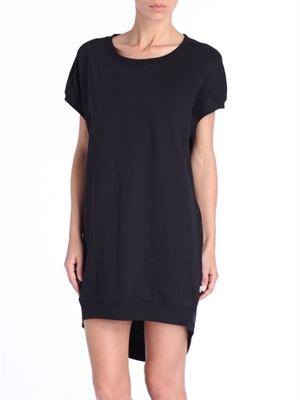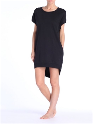 Scoop neck, short sleeves.