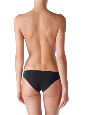 Low rise, metallic logo detail.
