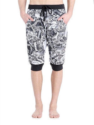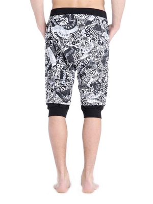 Coulisse, all over print, elastic waistband, rib hem.