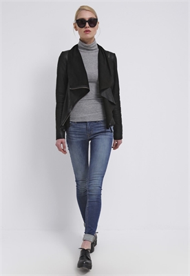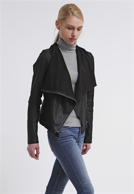 contiene partes no textiles de origen animalLargo:normalCierre:cremalleraAncho de la espalda:36 cmModelo, altura:178 cm, lleva la talla 36Largo de la prenda:51 cmLargo de la manga:61 cmLargo de manga:manga extralargaMaterial exterior:100% cueroCuidados:lavado de cuero profesionalNúmero de artículo:MB121G00T-802