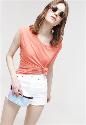 Largo:normalMaterial/composición:jerseyModelo, altura:178 cm, lleva la talla SCuello/escote:cuello redondoOcasión:tiempo libreEstampado:unicolorLargo de la prenda:69 cmLargo de manga:manga extracortaMaterial exterior:50% algodón, 50% viscosaMaterial mangas:85% poliéster, 15% algodónCuidados:no utilizar secadora, lavar a máquina a 30°C, programa delicadoNúmero de artículo:BE621D07N-H11