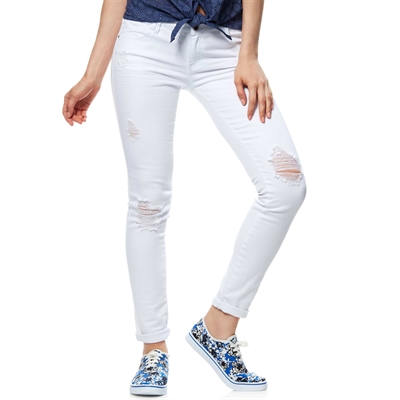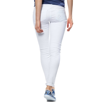 El vaquero de color blanco es un básico imprescindible en cualquier armario. - Cierre con botones y cremallera - Corte pitillo/skinny fit - Largo de entrepierna: 76 cm aproximadamente - Ancho del bajo: 13 cm aproximadamente - En la imagen, la modelo lleva una talla 38 y mide 1,77 m.98% algodon,2% elastanoLavable a máquina.