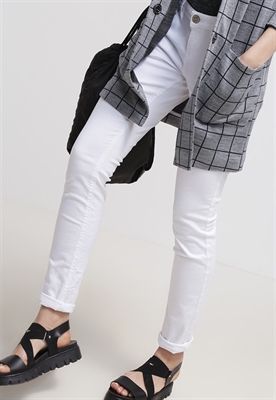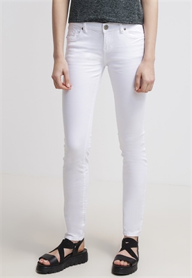 contiene partes no textiles de origen animalLargo:normalAjuste:slim fitLargo entrepierna:82 cmMaterial/composición:vaqueroModelo, altura:180 cm, lleva la talla 27x32Largo exterior de la pierna:103 cmCierre:cremallera invisibleBolsillos:traseros, lateralesEstampado:unicolorCintura:bajoMaterial exterior:98% algodón, 2% elastanoCuidados:lavar a máquina a 40 °C, no utilizar secadoraNúmero de artículo:QS121N017-A11