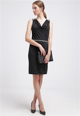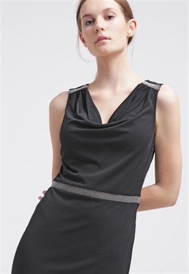 Largo:por la rodillaAjuste:ceñidosCierre:cremalleraRelleno:100% poliésterMaterial/composición:jerseyModelo, altura:178 cm, lleva la talla SCuello/escote:drapeadoOcasión:oficina, fiestaEstampado:unicolorLargo de la prenda:95 cmLargo de manga:sin mangasMaterial exterior:100% poliésterCuidados:no utilizar secadora, lavar a máquina a 30°C, programa delicadoNúmero de artículo:ES421C0BU-Q11