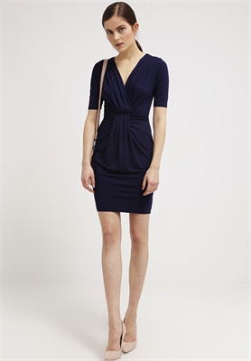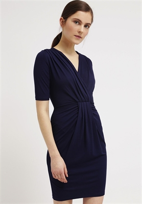 Largo:cortaMaterial/composición:jerseyModelo, altura:179 cm, lleva la talla 36Cuello/escote:pico cruzadoEstampado:unicolorLargo de la prenda:87 cmLargo de manga:cortaMaterial exterior:93% viscosa, 7% elastanoCuidados:lavar a máquina a 40 °C, no utilizar secadora, programa delicadoNúmero de artículo:DP521C0BK-K11
