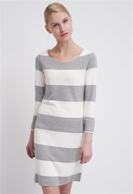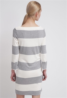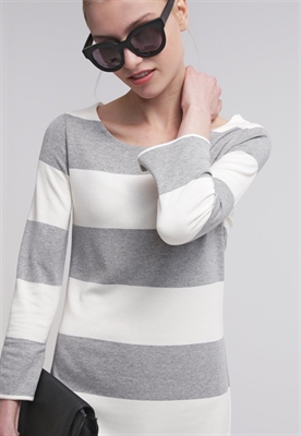 Modelo, altura:179 cm, lleva la talla SCuello/escote:cuello redondoEstampado:de rayasLargo de la prenda:90 cmLargo de la manga:51 cmLargo de manga:manga largaMaterial exterior:90% viscosa, 7% poliamida, 3% elastanoCuidados:no utilizar secadora, lavar a máquina a 30°C, programa delicadoNúmero de artículo:GA321C02D-D11