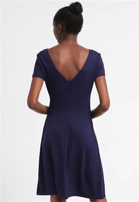 Largo:cortaAjuste:tailoredMaterial/composición:jerseyModelo, altura:178 cm, lleva la talla SCuello/escote:espalda al aireOcasión:tiempo libreEstampado:unicolorLargo de la prenda:87 cmLargo de manga:cortaMaterial exterior:70% viscosa, 25% poliéster, 5% elastanoCuidados:lavar a máquina a 40 °C, no utilizar secadora, programa delicadoNúmero de artículo:ES121C074-K11