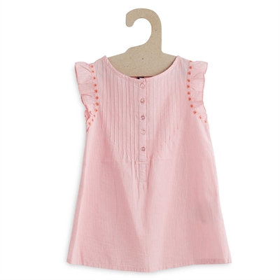 Te encantará este vestido para vestir a tu bebé para una ocasión especial. - Vestido de popelina - Cuello redondo - Manga corta con volante - Cierre con botones en el escote - Tablas bajo el escote - Bordado de fantasía en la sisa - Algodón puro100% algodonSe puede lavar a máquina.