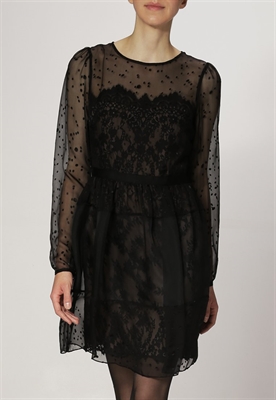 Largo:por el musloRelleno:100% sedaMaterial/composición:encajeModelo, altura:180 cmCuello/escote:cuello redondoOcasión:celebraciónLargo de la prenda:93 cmDetalles:cremallera, costura bajo el pecho, enaguasLargo de la manga:70 cmLargo de manga:manga largaMaterial exterior:85% seda, 15% viscosaCuidados:lavar en secoNúmero de artículo:MB621C01B-Q11
