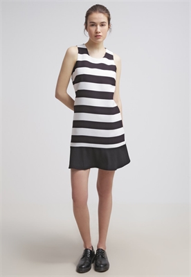 Largo:cortaCierre:cremalleraRelleno:95% poliéster, 5% elastanoAncho de la espalda:29 cmModelo, altura:178 cm, lleva la talla 36Cuello/escote:cuello redondoEstampado:de rayasLargo de la prenda:89 cmDetalles:costura bajo el pecho, enaguasLargo de manga:sin mangasMaterial exterior:100% poliésterCuidados:no utilizar secadora, lavar a máquina a 30°C, programa delicadoNúmero de artículo:K4421C051-Q11