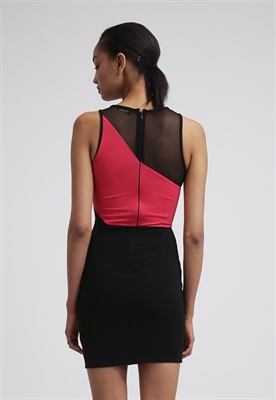 Largo:cortaCierre:cremalleraModelo, altura:180 cm, lleva la talla 36Cuello/escote:cuello redondoLargo de la prenda:83 cmTransparencia:poco transparenteLargo de manga:sin mangasMaterial exterior:97% poliéster, 3% elastanoCuidados:lavar a máquina a 40 °C, no utilizar secadora, programa delicadoNúmero de artículo:MF921C03F-Q11