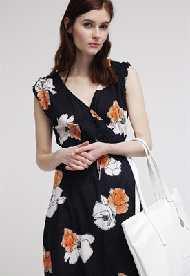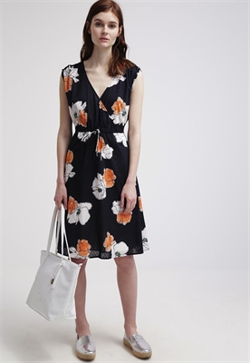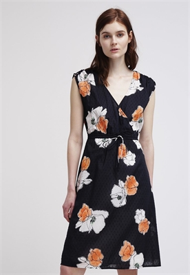 Largo:por la rodillaAncho de la espalda:47 cmModelo, altura:177 cm, lleva la talla SCuello/escote:pico cruzadoOcasión:tiempo libreEstampado:de floresLargo de la prenda:103 cmTransparencia:poco transparenteDetalles:enaguas, cintura elásticaLargo de manga:sin mangasMaterial exterior:100% algodónNúmero de artículo:NN121C04E-Q11
