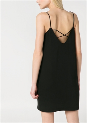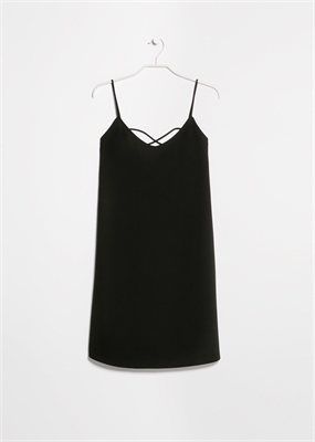 Vestido ligero de tirantes finos con escote de pico, tiras cruzadas en la parte posterior y forro interior.