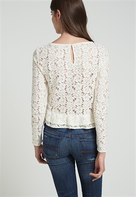 Largo:normalAjuste:ceñidosMaterial/composición:encajeModelo, altura:180 cmCuello/escote:cuello redondoEstampado:unicolorLargo de la prenda:49 cmLargo de la manga:62 cmLargo de manga:manga largaMaterial exterior:70% algodón, 30% nylonCuidados:no utilizar secadora, lavar a máquina a 30°C, encoge un 5%Número de artículo:V1021E05E-A11