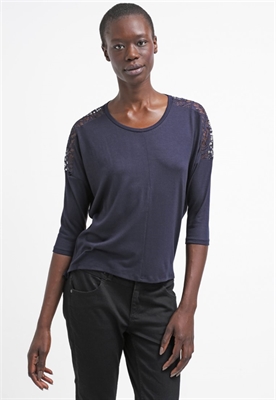 Largo:largoAjuste:anchoMaterial/composición:jersey, encajeModelo, altura:180 cm, lleva la talla 36Cuello/escote:cuello redondoOcasión:tiempo libreEstampado:unicolorLargo de la prenda:68 cmLargo de la manga:40 cmLargo de manga:3/4Material exterior:60% viscosa, 34% poliéster, 6% elastanoCuidados:no utilizar secadora, lavar a máquina a 30°C, programa delicadoNúmero de artículo:VE121D0ML-K11