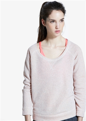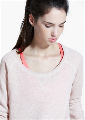 Sudadera confeccionada en una mezcla de algodón e hilo metálico en un tejido de felpa transpirable, cálido y suave que proporciona comodidad y libertad de movimiento. Escote redondo, manga larga raglán y detalle de costuras abiertas. Una prenda indispensable para ejercicios de bajo rendimiento o para momentos de relax.