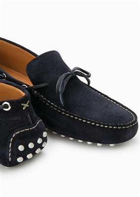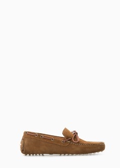 Zapato driver de ante con cierre de lazo y suela flexible de goma.