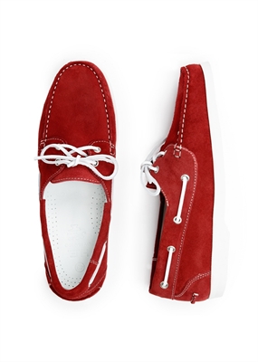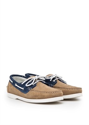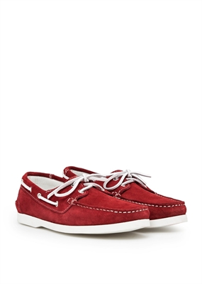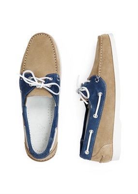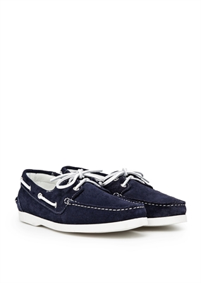 Zapatos de serraje estilo náutico con cierre de cordones de piel y suela de goma en contraste.