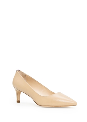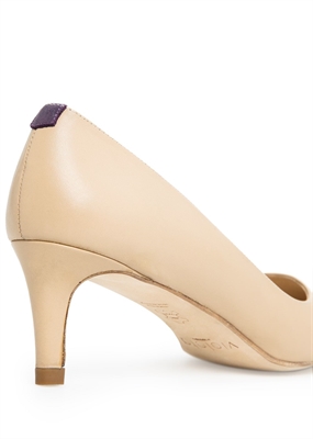 Zapato de salón en piel con tacón medio de aguja forrado.