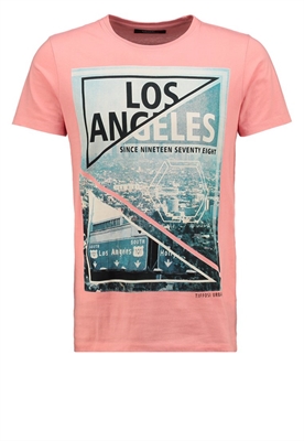 Largo:normalAjuste:normalMaterial/composición:jerseyModelo, altura:188 cm, lleva la talla MCuello/escote:cuello redondoEstampado:con impresión de imagenLargo de la prenda:71 cmLargo de manga:cortaMaterial exterior:100% algodónCuidados:lavar a máquina a 30°CNúmero de artículo:TF322O00T-J11